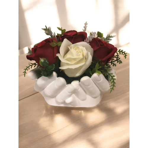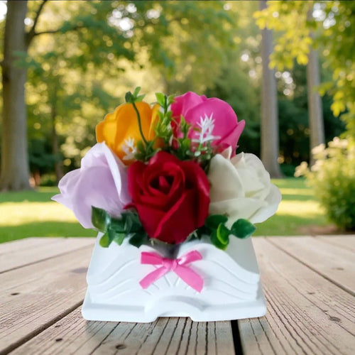 Ръчно изработен подарък с вечна сапунена роза в керамична лейка – Подарък, Който не Увяхва -